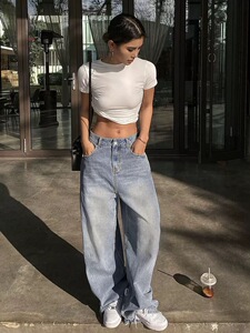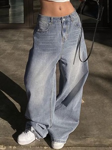 国境を越えた貿易アマゾンヨーロッパとアメリカのデザインの女性用ワイドレッグジーンズ、ルーズカジュアルファッションストレートパンツイン