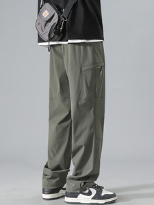 男の子、高校生、中学生向けの夏用アイスシルクオーバーオール、ティーンエイジャー向けのカジュアルパンツ、男の子向けの薄手のパンツ