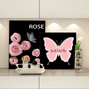 ローズバタフライインハイエンドリビングルーム装飾絵画ベッドサイドテーブル装飾品アートスタイルの壁掛け絵画