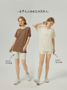 2025 春夏新作 PCM 相変化クールヨガトップルーズスポーツ半袖ロングソフトヨガウェア女性用