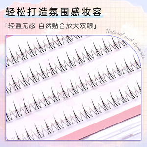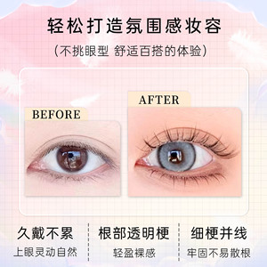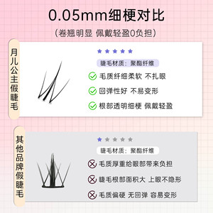 ムーンプリンセスつけまつげ、自然に厚いセグメント化された怠惰なまつげ、透明なステム、4列の小さな炎の下まつげ