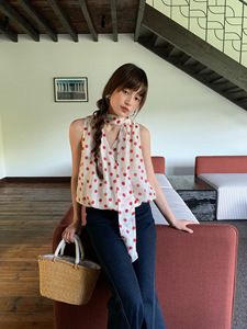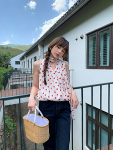 Quanlimei NEWOPEN 25 夏フレンチスイートポルカドットテンセルホルターネックベストシフォンシャツ女性のための S5665