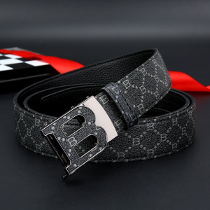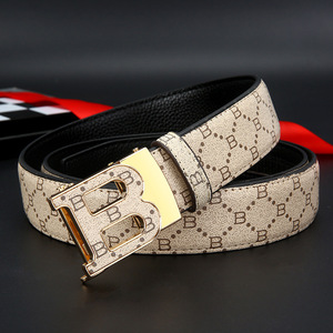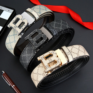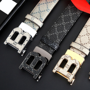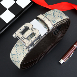 自動バックルベルト メンズ 刻印入り 若者向け B世代 パンツベルト トレンド レザー カジュアル 多用途 メタル製自動バックル