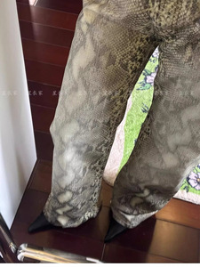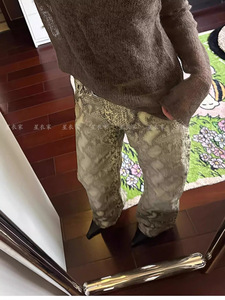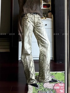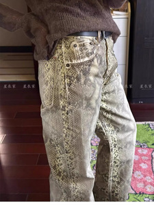 アメリカンホットガールレトロヘビーデューティパイソンプリントジーンズ女性のための 2025 夏デザインニッチフロアレングスパンツ