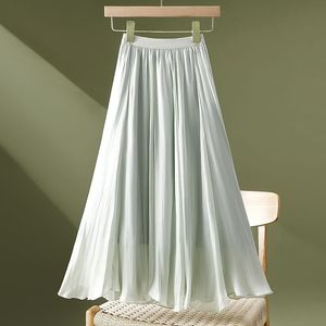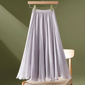 高級不規則なストリーマーガーゼスカート女性の夏の新しいハイウエストミドル丈シフォンAラインロングスカート