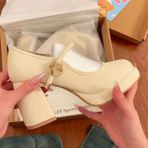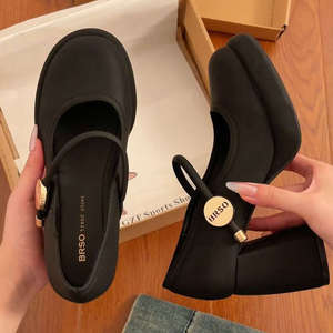 女性のための黒のフレンチスタイルの小さな太いヒールのハイヒールの靴 2025 新しい夏スカート付きメリージェーン浅い革靴