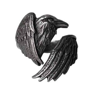 Honrun ヨーロッパとアメリカンスタイルのタイシルバーパーソナライズされたゴシックパンクレトロな翼ダークブラックカラスオープン調節可能なリングジュエリー