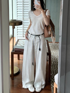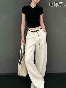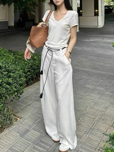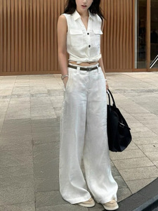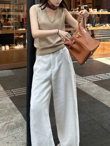 5werkweリラックスして快適なワイド耳子1OO亜麻の曲がりナイフのワイドパンツのズボンのゆったりとしたカジュアルパンツ