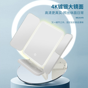 ライト付き化粧鏡 LED 大型超薄型 70% off シェル折りたたみライト 設置不要 高外観価値 ポータブルミラー