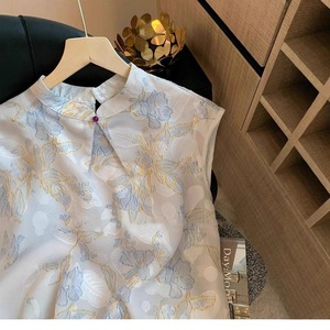 2025レトロ新絶美上着夏中国風高級盤ボタンジャカード袖なしサテンシャツ