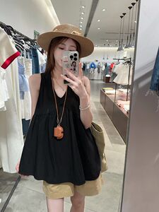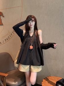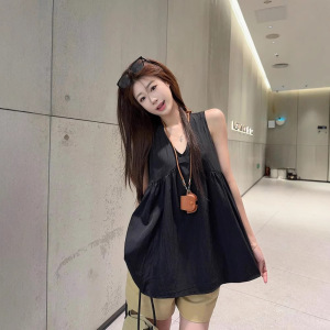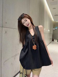 デザイン V ネックベストトップ 2025 夏の新ルーズ韓国黒アウターサスペンダーレディースベビードールシャツイン