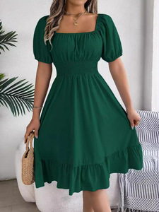 2025 春夏ヨーロッパとアメリカのカジュアルスクエアネック半袖ウエストフリル A ラインスカート独立したステーションクロスボーダー Amazon 婦人服