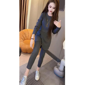 时尚套装女2025年春秋新款法式气质中长款开叉上衣+显瘦小脚裤