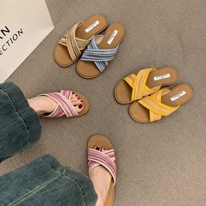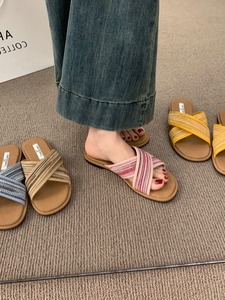 女性の夏のアウターウェアのための平底レトロ織りオープントゥサンダル 2025 新しいスタイルスカートクロスストラップローマンサンダル