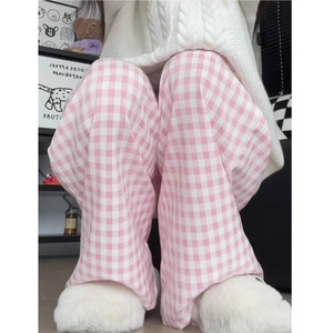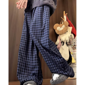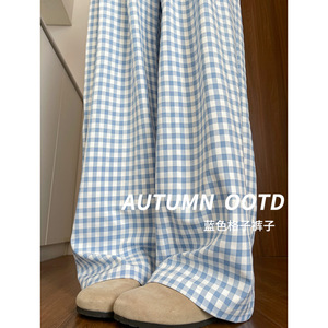 Douyin 品質ブルーチェック柄パンツ女性の夏 2025 人気のルーズスリムカジュアルパンツストレートワイドレッグスポーツパンツ