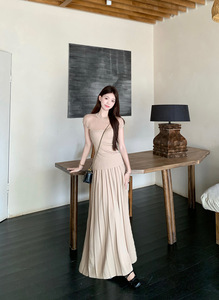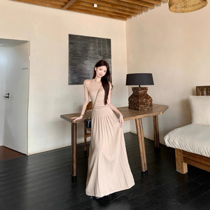 リアルショット 2025 中空デザイン半袖スリムニットトップ女性用 + A ラインプリーツスカートスーツ女性用
