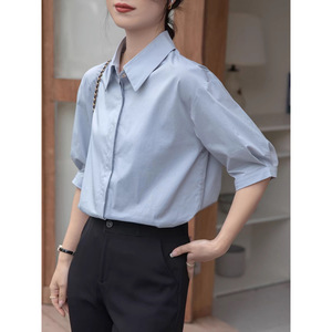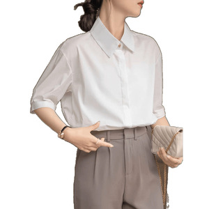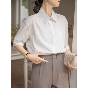 フレンチニッチミニマリストライト大人スタイル白半袖シャツ女性の夏のプロフェッショナル通勤面接韓国カジュアルトップ