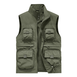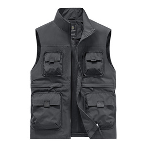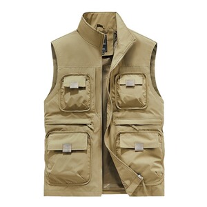 マルチポケット作業ベストメンズ春と秋薄型通気性屋外速乾性写真撮影釣り服スタンドカラーカジュアルベスト