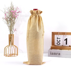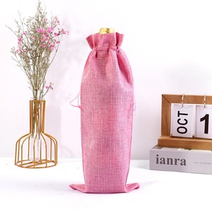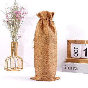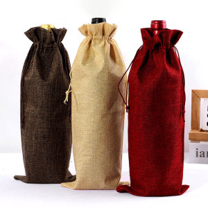 麻の袋の引き紐の束口の高級なシャンパンのワインの包装袋の粗い麻のまねる麻の収納の束口のワインの袋