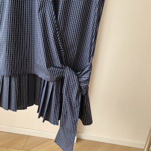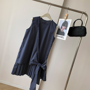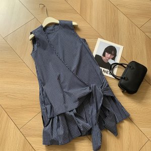 フランス風のストラップのデザインの格子縞のワンピース2025夏の新型の構造風の袖なしの不規則なスカートのワンピース