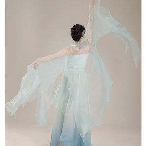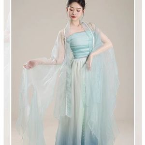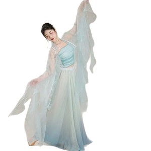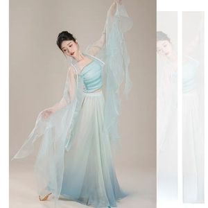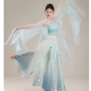 クラシックダンススパンコールグラデーションパンツスカート、エレガントなガーゼ、妖精のようなダンス気質、中国の練習用パフォーマンス服スーツ、痩身