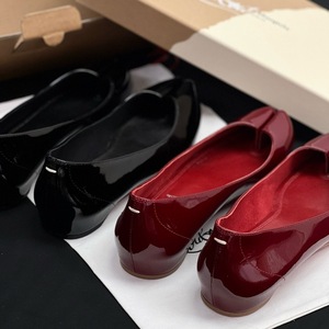 2025 春夏新作フラットソールピッグトゥ浅口パテントレザーワンステップニッチレッドバレエシューズ女性用
