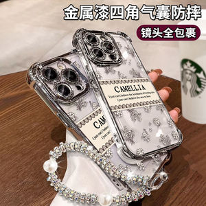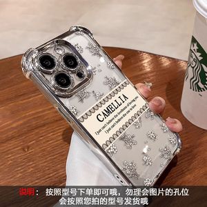 OPPO Reno14、VIVO X200、Y78対応、高級感のある英語の花柄、四隅にエアバッグ付き、耐衝撃、電気メッキ加工のスマホケース