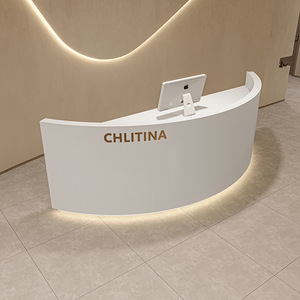 简约美容院吧台服装店收银台美发店烤漆前台圆弧形咨询服务接待台