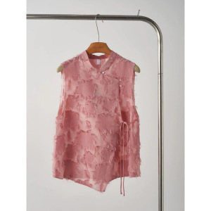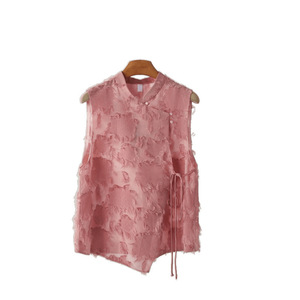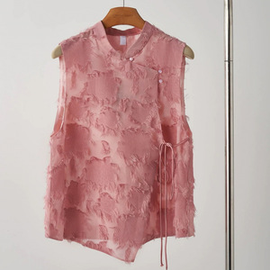 新中国式の国風の斜めの襟のストラップのフリンジベスト2025春夏の新型の婦人服の上着の新型