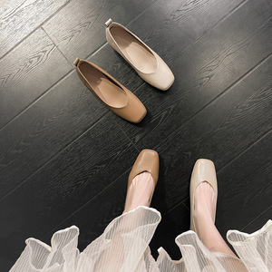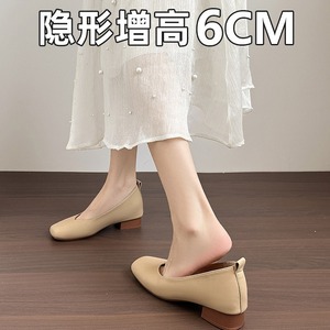 シープスキンバージョン_女性用ソフトソールシューズ、夏用ビーニーシューズ、フレンチスクエアトゥ、浅い口、小柄な人向け、身長6cmアップ、おばあちゃん靴