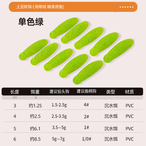 シンキングソリッドカラーグリーンポテトソフトベイト