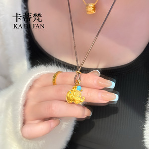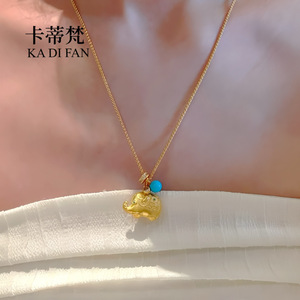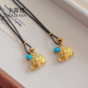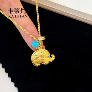 リアルゴールドメッキ高色保持サンドゴールド象ペンダント新しい中国風縁起の良い如意ドットダイヤモンド幸運象美しい松ネックレスカップルスタイル