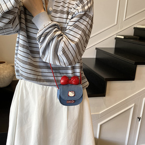 クロスボーダーミニショルダーレディースバッグ韓国語版かわいいニッチリボンガールプリンセスキティクロスボディ子供用バッグトレンディ