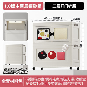 猫トイレ 飛沫防止 半密閉廊下型 防臭 特大二層猫トイレ 猫トイレ一体型収納キャビネット
