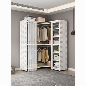 ウォークインクローゼットコーナーメタルコートラック床置き寝室ホールボード洋服ラック収納ラックワードローブホーム