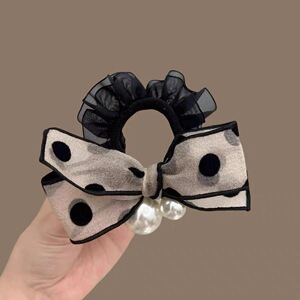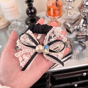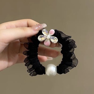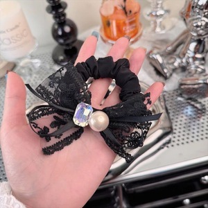 [スタイル 13] ビーズレースヘアゴム - ブラック