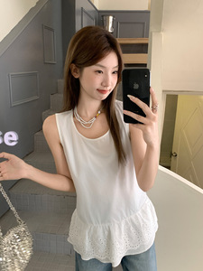 韓国白甘い純粋な欲望ベストサスペンダー女性のための 2025 夏の新しいレースステッチルーズレイジートップ