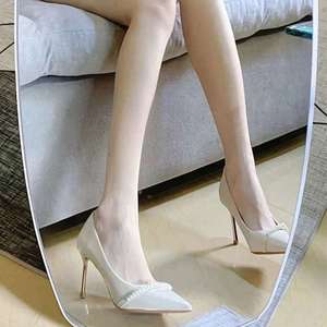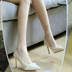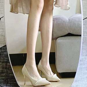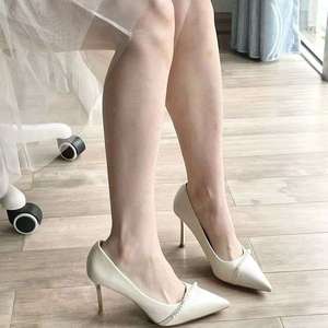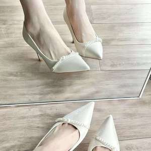 キンセニエラの超美しい白いスティレットヒールのウェディングシューズ、高級サテンパールポインテッドトゥのブライダルシューズ、ブライズメイドドレスのハイヒール