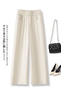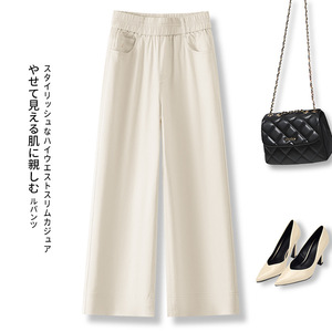 女性のための白いカジュアルワイドレッグパンツ 2025 新しい夏薄い 9 点パンツルーズ痩身小人ストレート弾性