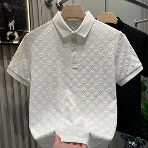 Poloシャツ男ファッションファッション男服2025夏新作純色男カジュアル半袖氷糸涼感tシャツ