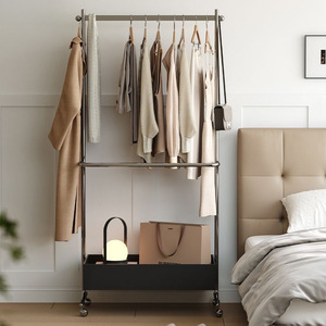 新しいフロア衣類ラック、モダンなステンレス鋼の衣類ラック、コートラック、寝室のモバイル衣類収納ラック、コートラック