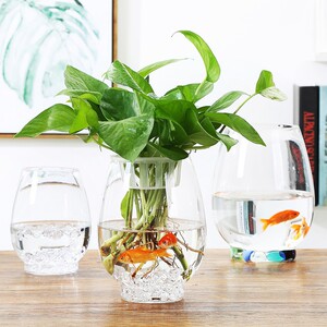 大型透明ガラス花瓶フラワーアレンジメント水耕恐竜の卵ポトス植木鉢水槽ラウンド水植物容器