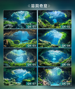 水槽専用背景ステッカー 高精細画像 無料静電フィルム 5D立体造園背景画 中国風背景ボード