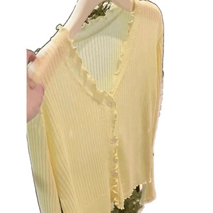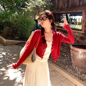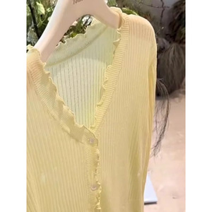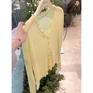 木耳边v领针织开衫上衣女夏小个子短款防晒小披肩薄纱外搭空调衫