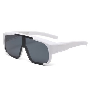 【メガネセット丨近視メガネ装着可能】ホワイトフレームグレーピース+ミラーバッグ+ミラークロス