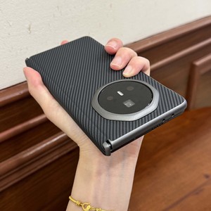Honor Magic V5用携帯電話ケース、カーボンファイバー柄、中軸保護、VS2プレーンレザーヒンジ、フルカバー、耐衝撃ハードケース
