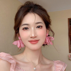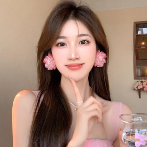粉色花朵耳夹