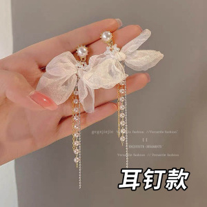 白色蝴蝶结珍珠耳钉款