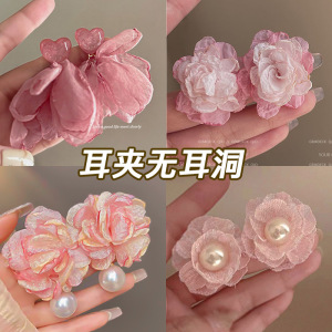 花朵耳夹无耳洞女适合夏天的耳环2025新款爆款高级感小众设计耳饰