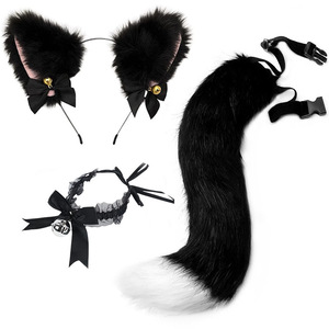 コスプレ猫耳カチューシャ猫しっぽアクセサリー手作りかわいい猫娘獣耳髪饰り獣尾饰りセット